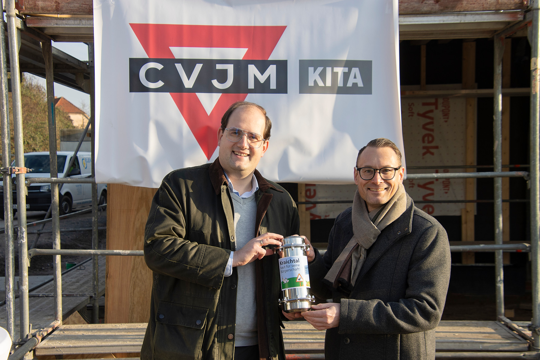 Am Mittwoch, den 3. Dezember, durften wir bei strahlendem Sonnenschein Teil eines ganz besonderen Ereignisses werden: des ersten Zeitkapsel-Events der Stadt Kraichtal. Gemeinsam mit Vertreterinnen und Vertretern der Stadt, des CVJM Kraichtal und des CVJM Baden haben wir am Eingang der neuen Kita Schlössle am Gaisberg eine Zeitkapsel feierlich vergraben.